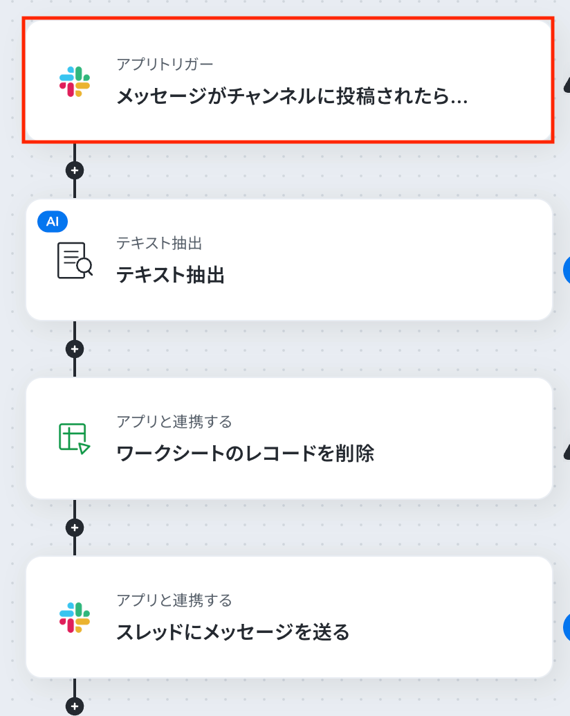 メッセージがチャンネルに投稿されたタイミングで、自動処理を開始するための設定を行います。
