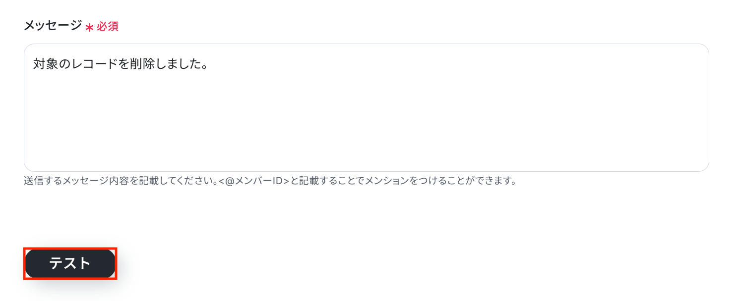 入力が完了したら「テスト」をクリックして、設定した送信先にメッセージが正しく届くか確認しましょう。