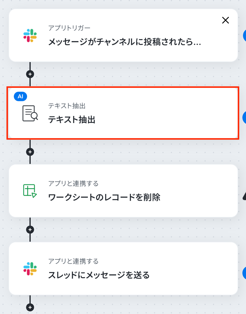 Slackのトリガーイベントで取得したメッセージ内容を対象に、AIで特定のテキストを抽出します。