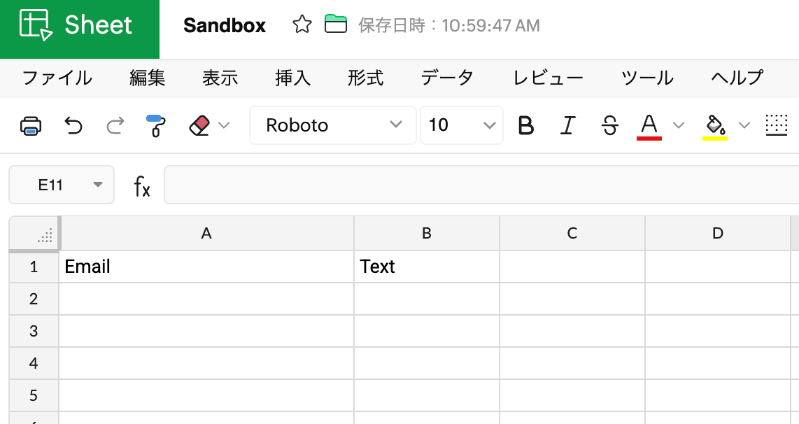 Zoho Sheetで、あらかじめワークブックにレコードを用意しておきましょう。