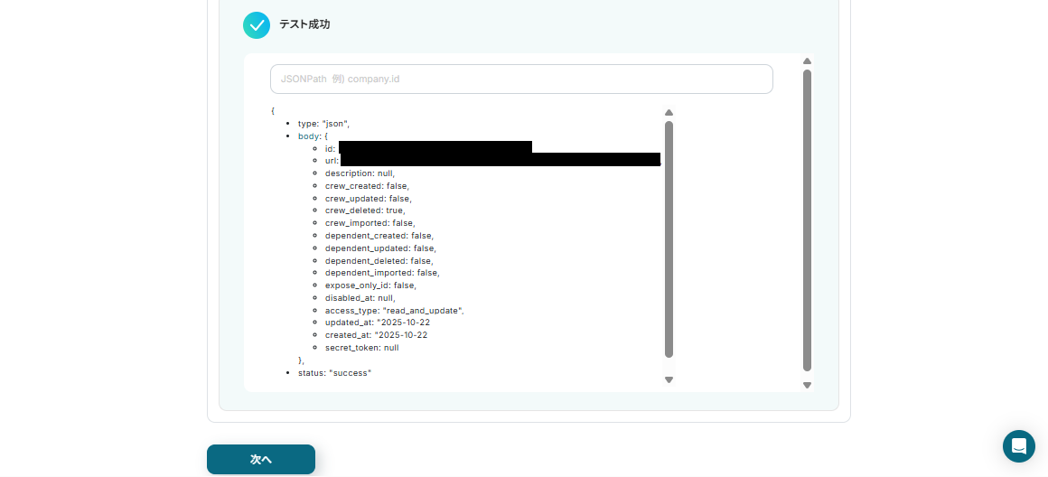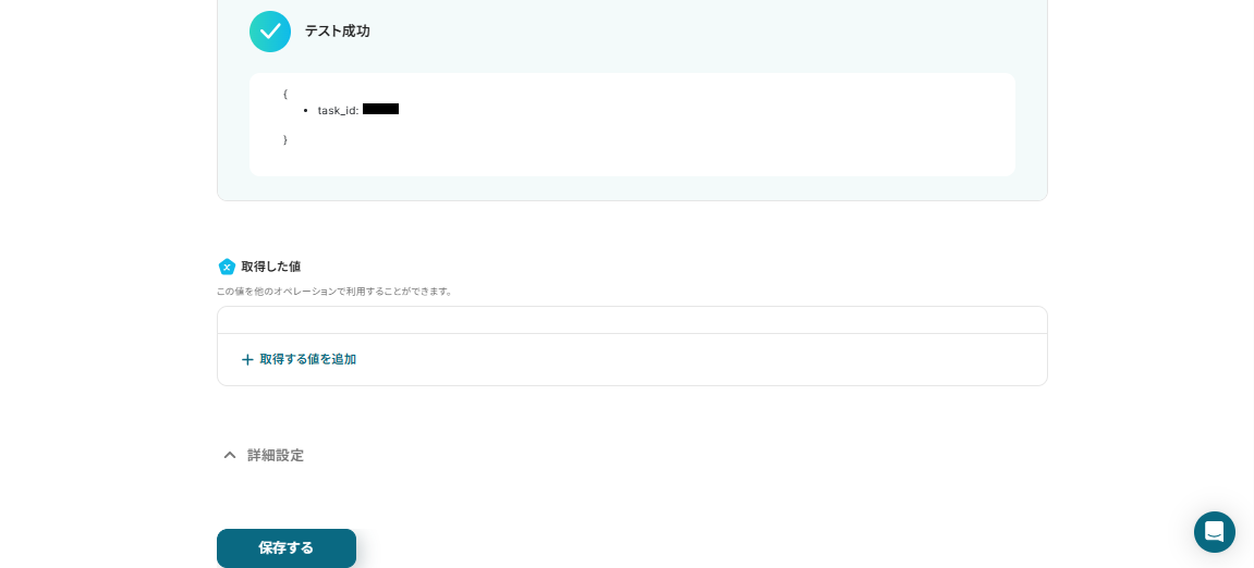 取得した値はこの後のステップで使用できます。確認ができたら「保存する」ボタンをクリックしましょう。