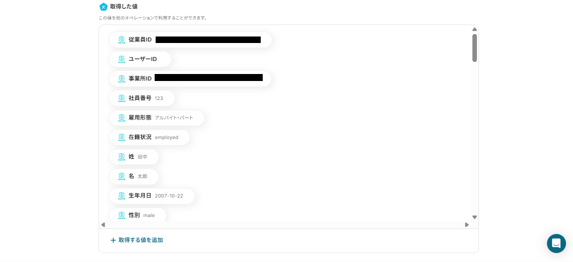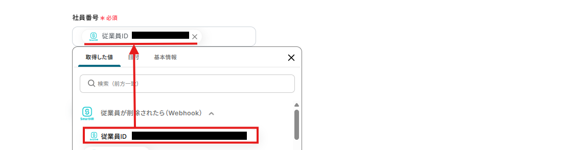 このように設定すると、SmartHRで従業員が削除されたら「従業員ID」を自動で取得することが可能です。