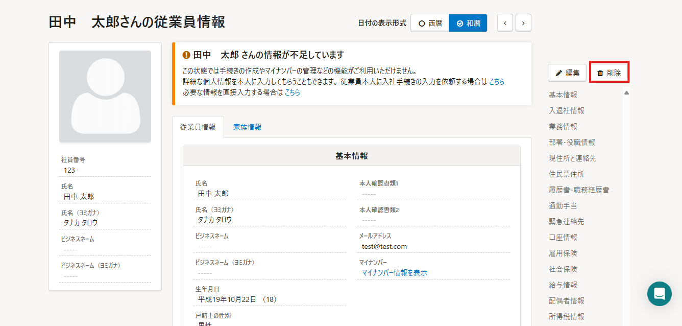 SmartHRにログインし、リスト用の従業員を削除してください。