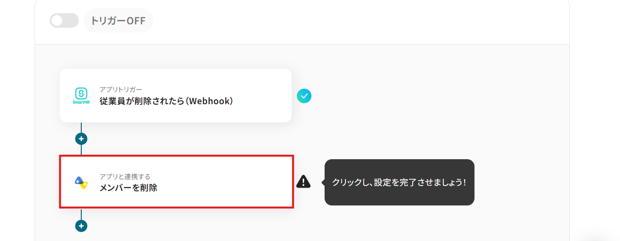 まずは、「従業員が削除されたら(Webhook)」という項目を設定しましょう!