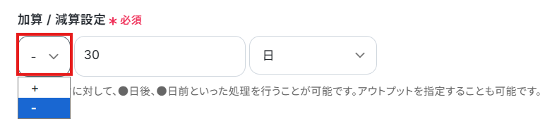 - 日時・日付の加算減算オペレーションでは、削除対象とする期間(例:-30日、-90日など)を自由にカスタマイズできます。