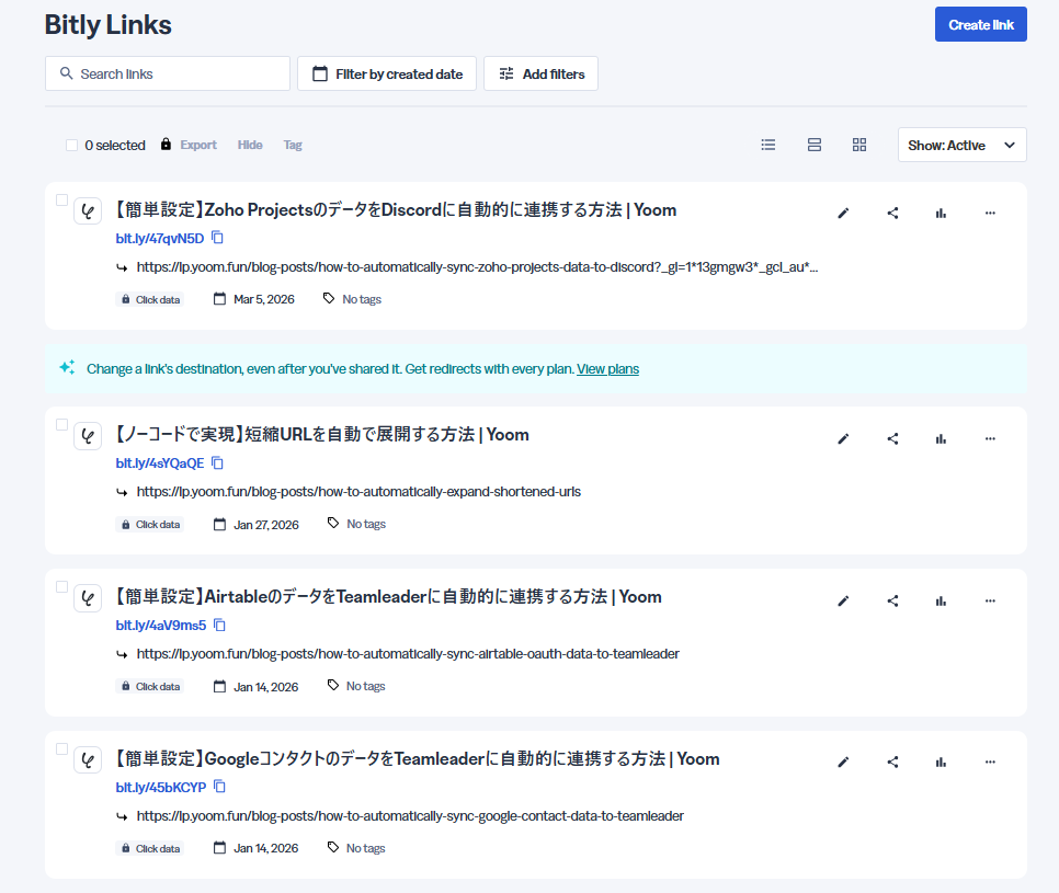 ※執筆者が連携しているBitlyのアカウントには、Bitlyのリンクが4つあります。