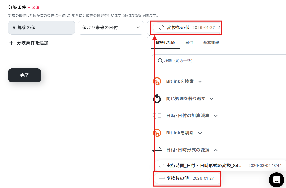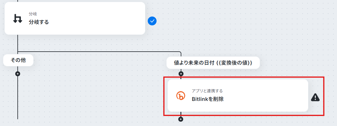 - 分岐機能を設定し、リンクの作成日時が手順3で算出した日時より古いかどうかを判定します。