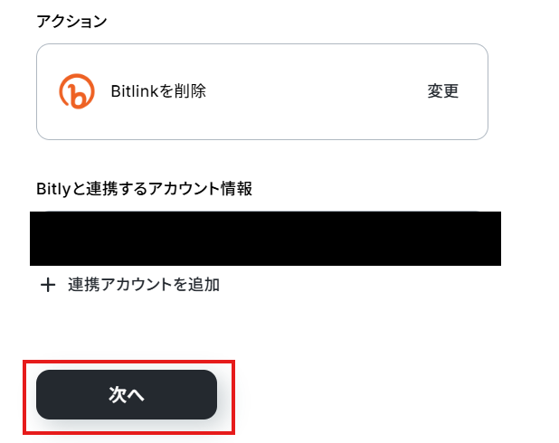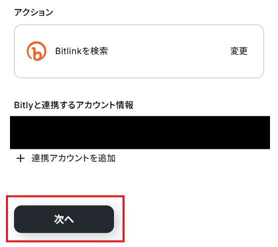 「Bitlinkと連携するアカウント情報」を確認し、「次へ」をクリックして進んでください。