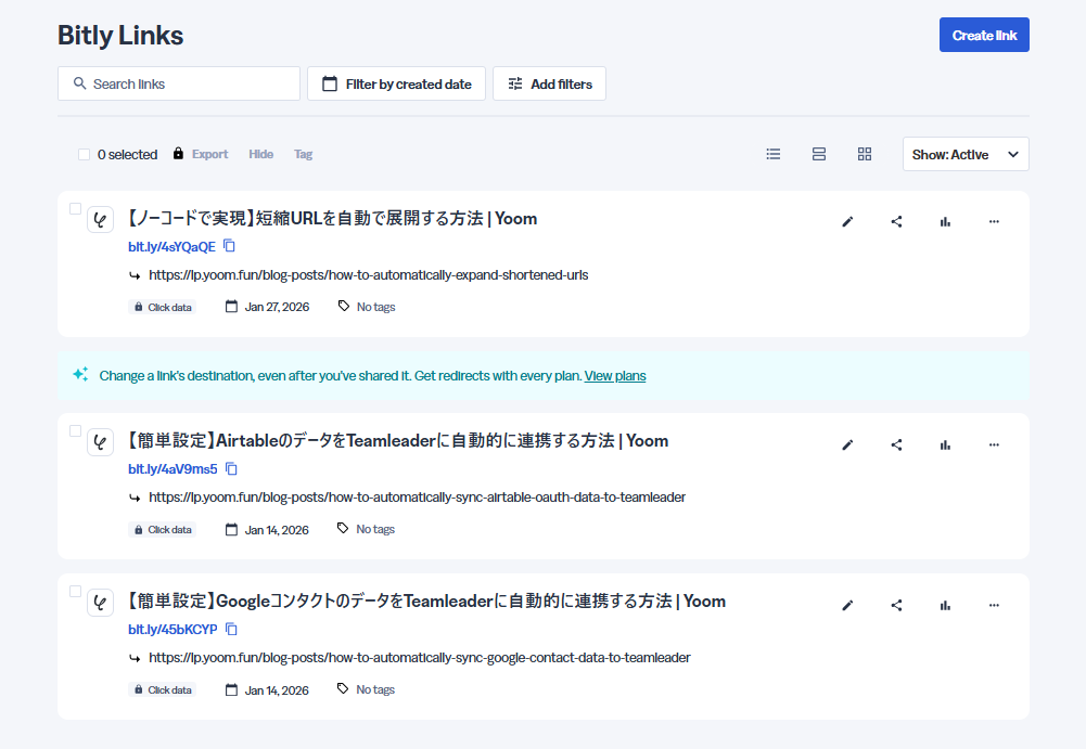 - BitlyとYoomを連携してください。