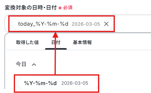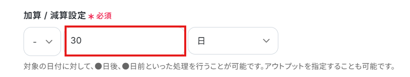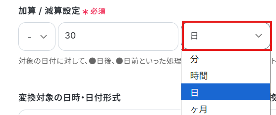 今回は変換対象の日時・日付から、30日前の日付を算出するように設定しました!