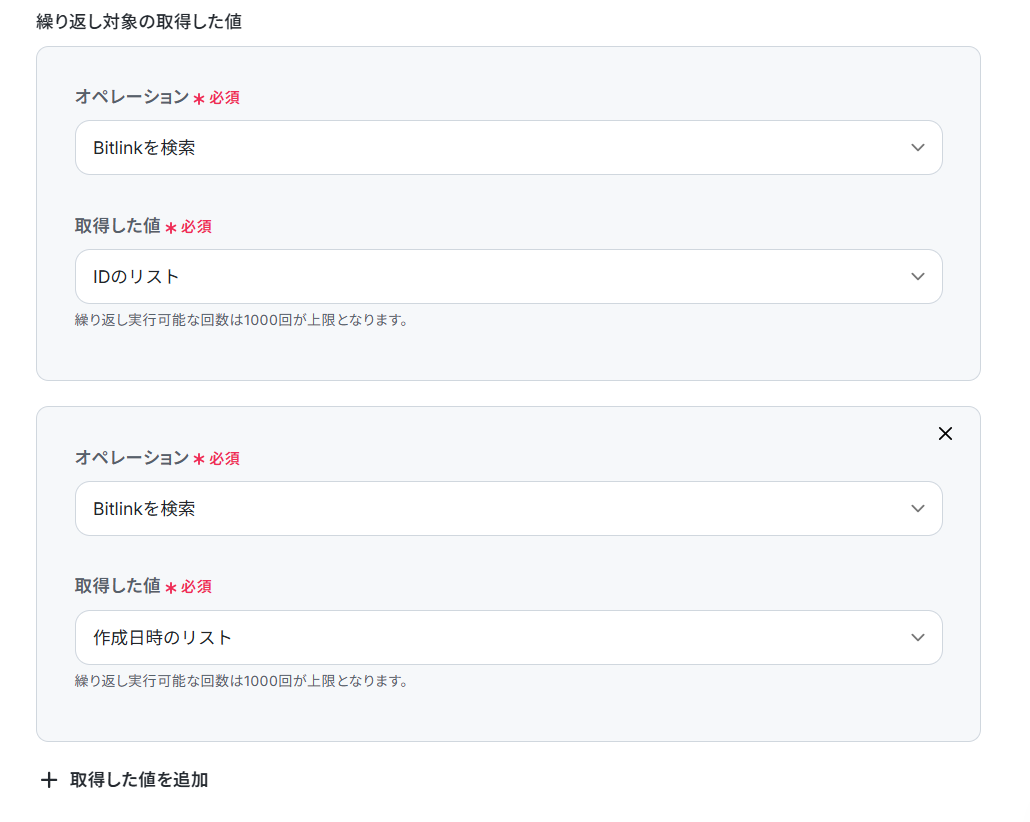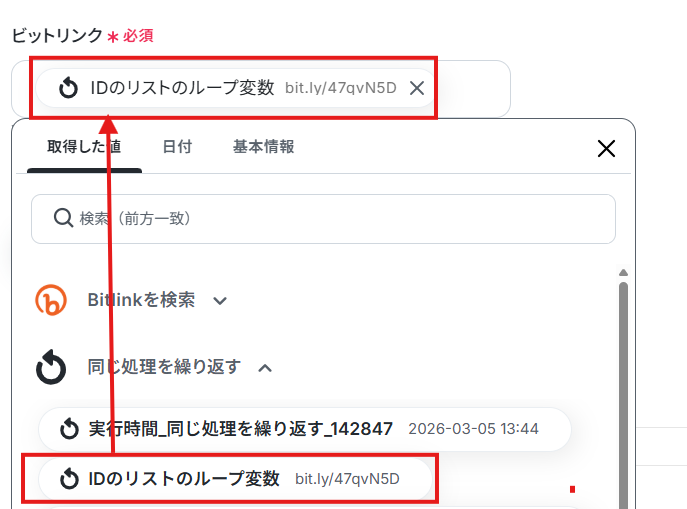 ビットリンクに取得した値のIDリストのループ変数を設定しましょう。