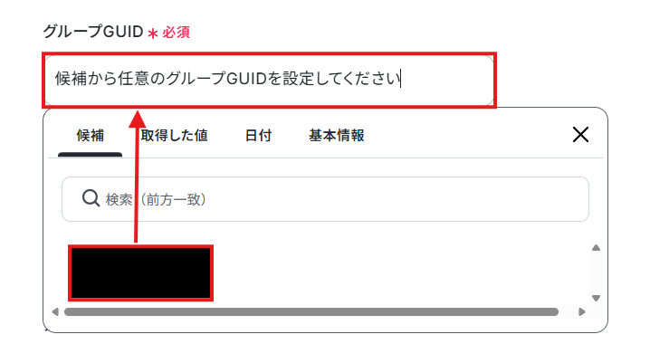 グループGUIDを候補から選択しましょう。