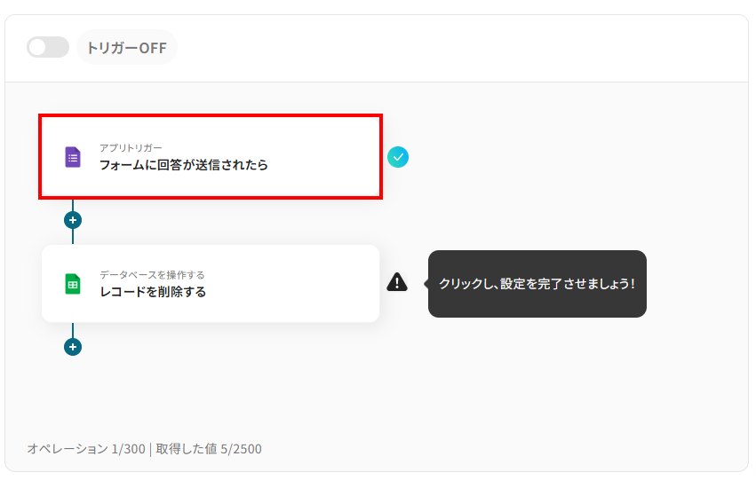 それではここから代表的な例として、Googleフォームに新しい回答が送信された際に、その回答内容に基づいてGoogle スプレッドシートの特定の行を自動で削除するフローを解説していきます!