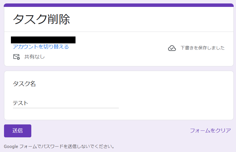 フォームID:入力欄下の注釈を参考に、先ほど作成したGoogleフォームのフォームIDを入力してください。
