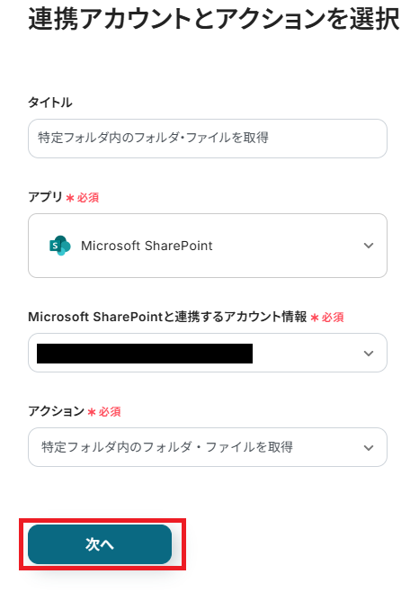 ステップ4:Microsoft SharePointの特定フォルダ内のコンテンツを取得をする