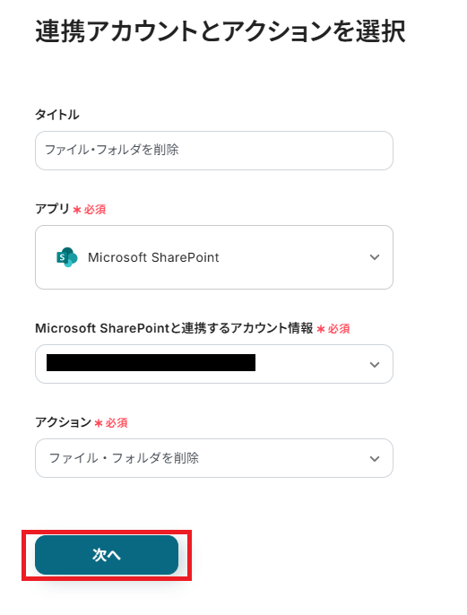 ステップ1:Microsoft SharePointをマイアプリ連携