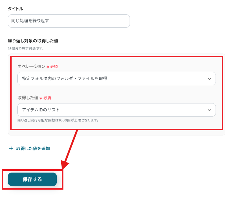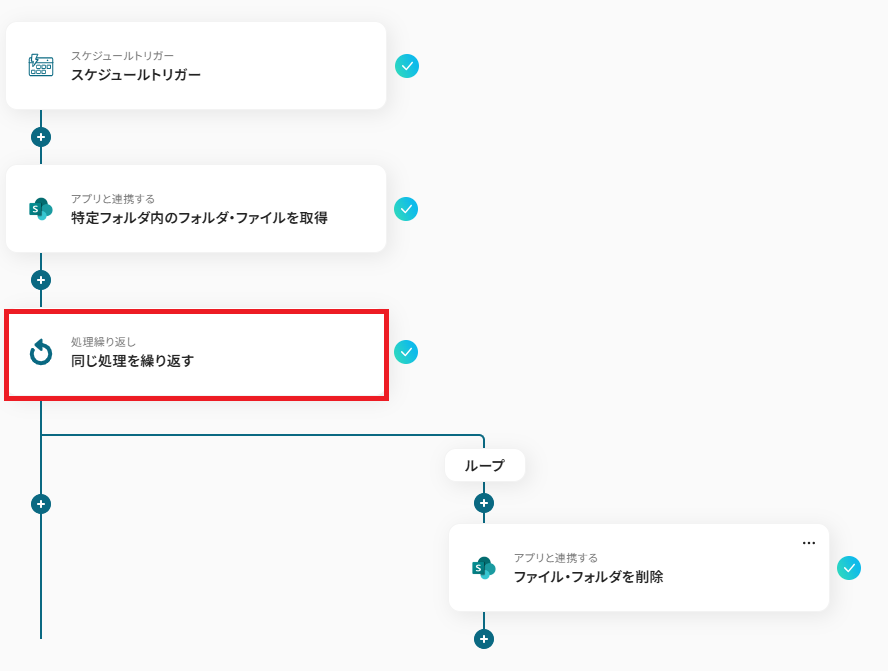 「同じ処理を繰り返す」の設定方法も併せてご参照ください。