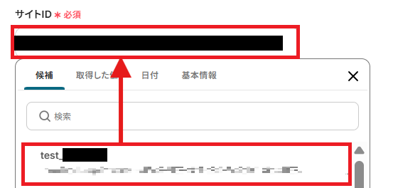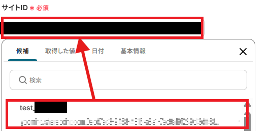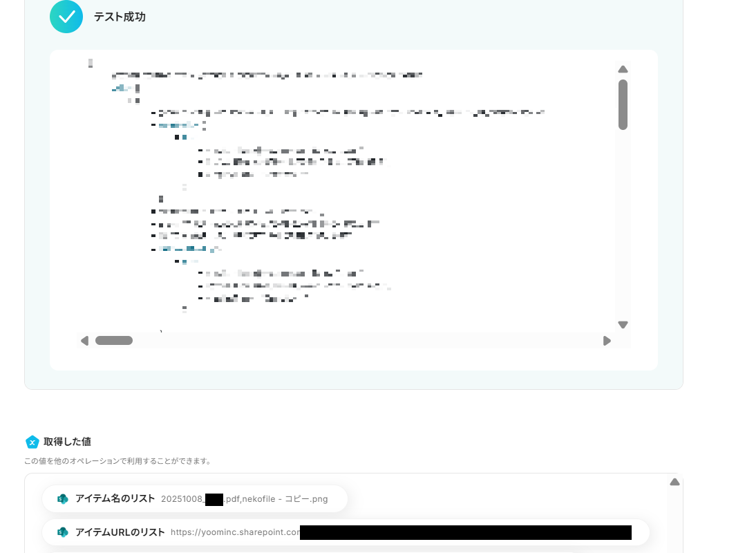 取得した値とは、トリガーやオペレーション設定時に、「テスト」を実行して取得した値のことを指します。