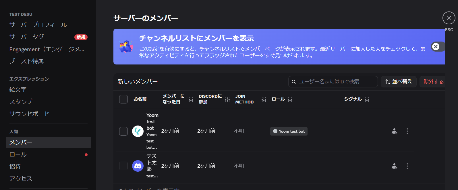 また、Discordの任意のサーバーにGoogle スプレッドシートに記載している削除対象のユーザーを登録しておきましょう。