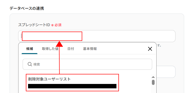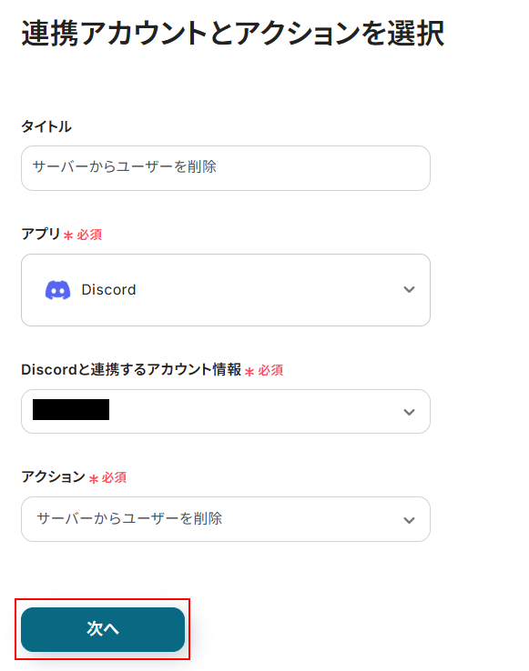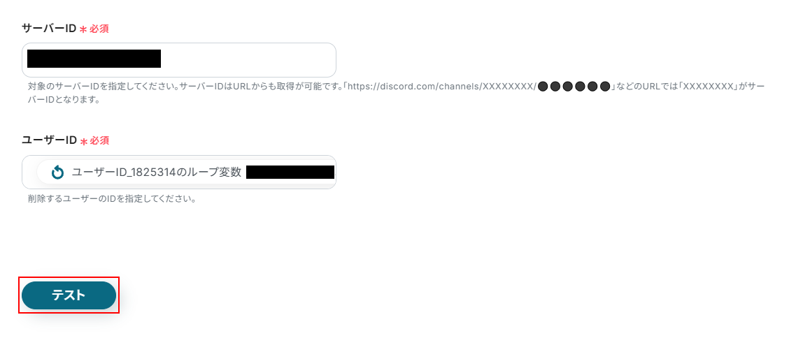 ユーザーを削除するにはDiscordのユーザーIDが必要となるため、取得した値の項目はプルダウンメニューからユーザーIDを設定してください。
