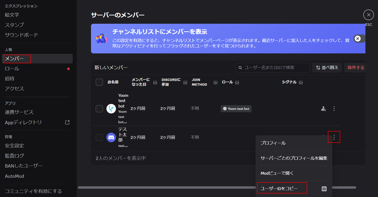 ステップ6:Discordのサーバーからユーザーを削除する設定