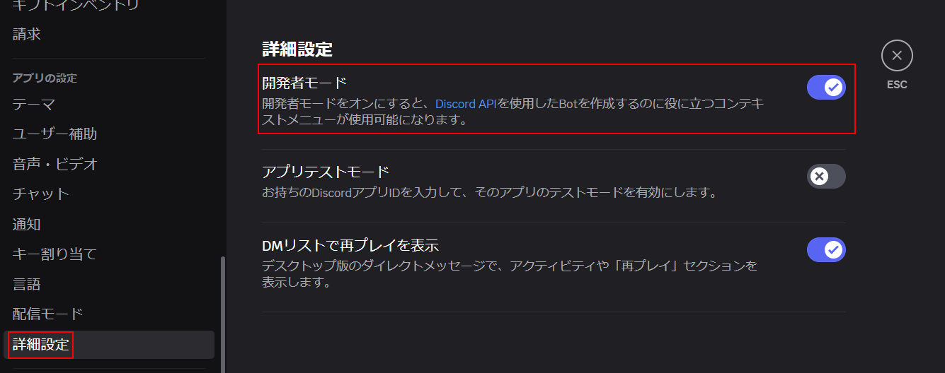A:ユーザーIDを取得するにはDiscordの開発者モードをONにする必要があります。