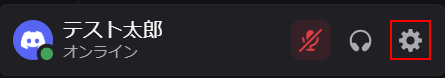 まず、Discordの画面の左下にある歯車マークをクリックします。