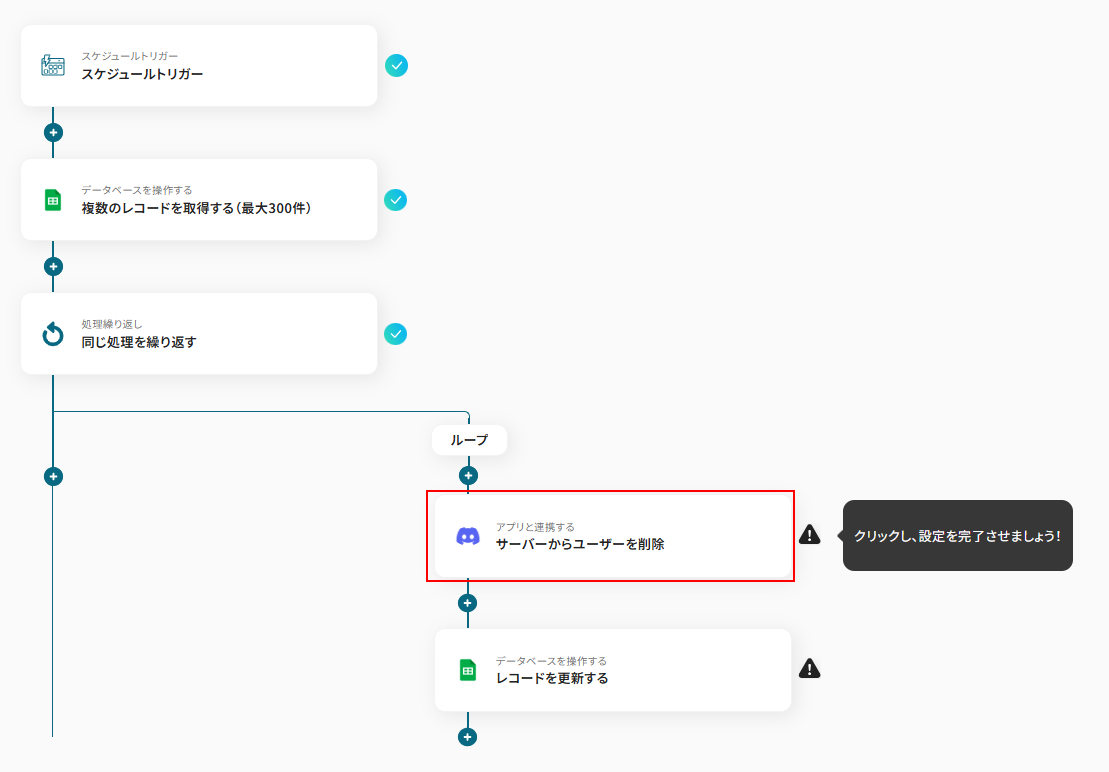 このワークフローを活用すれば、Google スプレッドシートのリストをもとにDiscordのユーザー削除を自動化でき、こうしたコミュニティ管理の課題をスムーズに解消できます。
