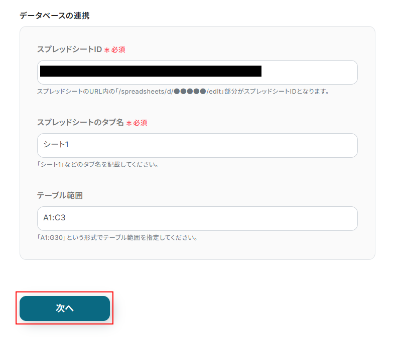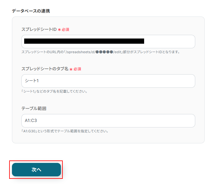 スプレッドシートIDを設定します。