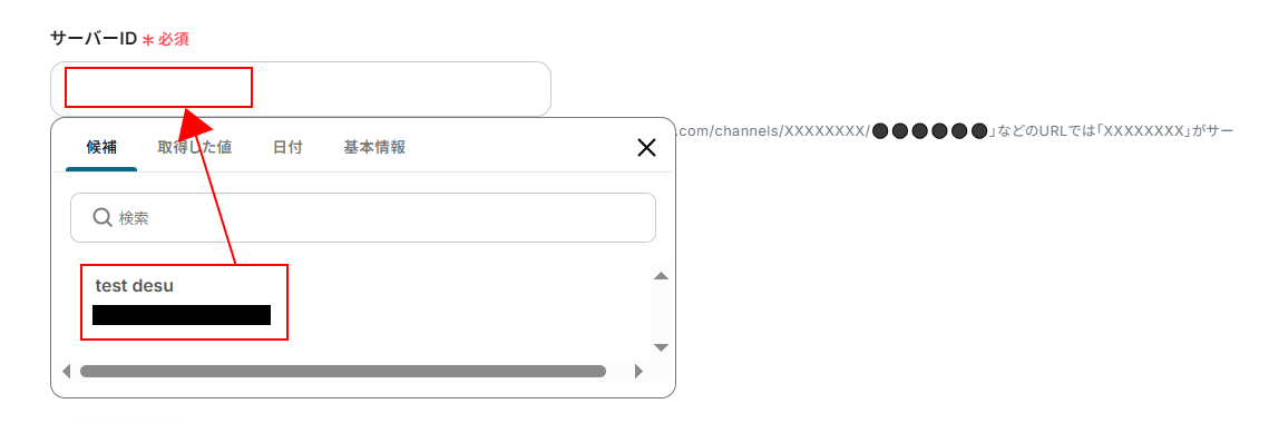 入力欄をクリックし、表示された候補の中から使用したいサーバーを選択してください。