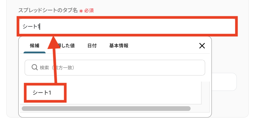 同じ要領で「スプレッドシートのタブ名」を選択してください。