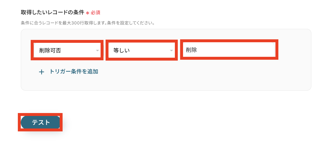 「取得したいレコードの条件」を設定します。