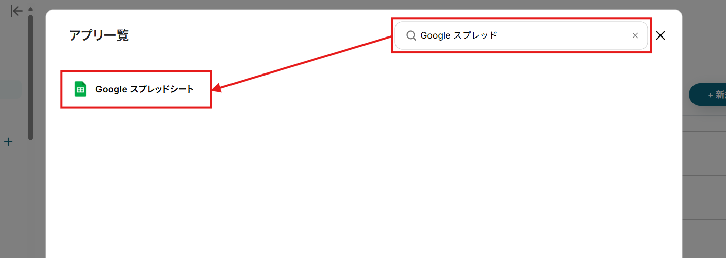 先ほど同様に、検索バーでGoogle スプレッドシートを検索して選択しましょう。