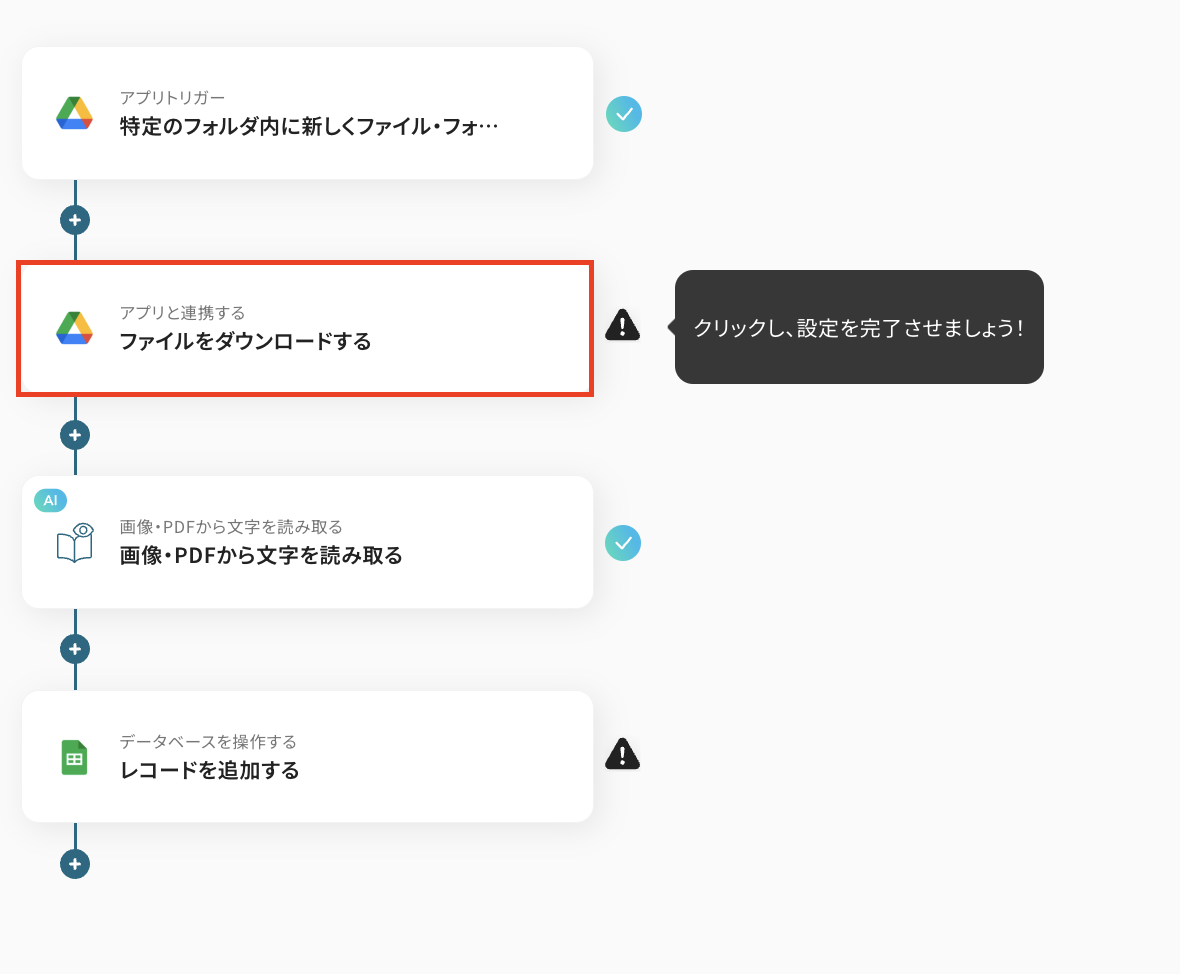 続いて、ステップ3で取得したファイル情報を用いて、実際にアップされたファイルをGoogle Driveからダウンロードする設定を行います。