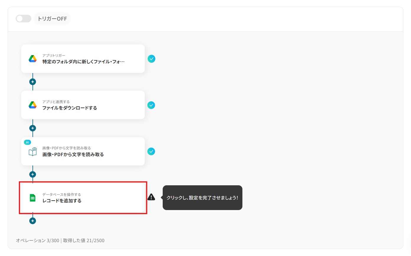 ステップ3:トリガーとなるGoogle Driveのフォルダ設定