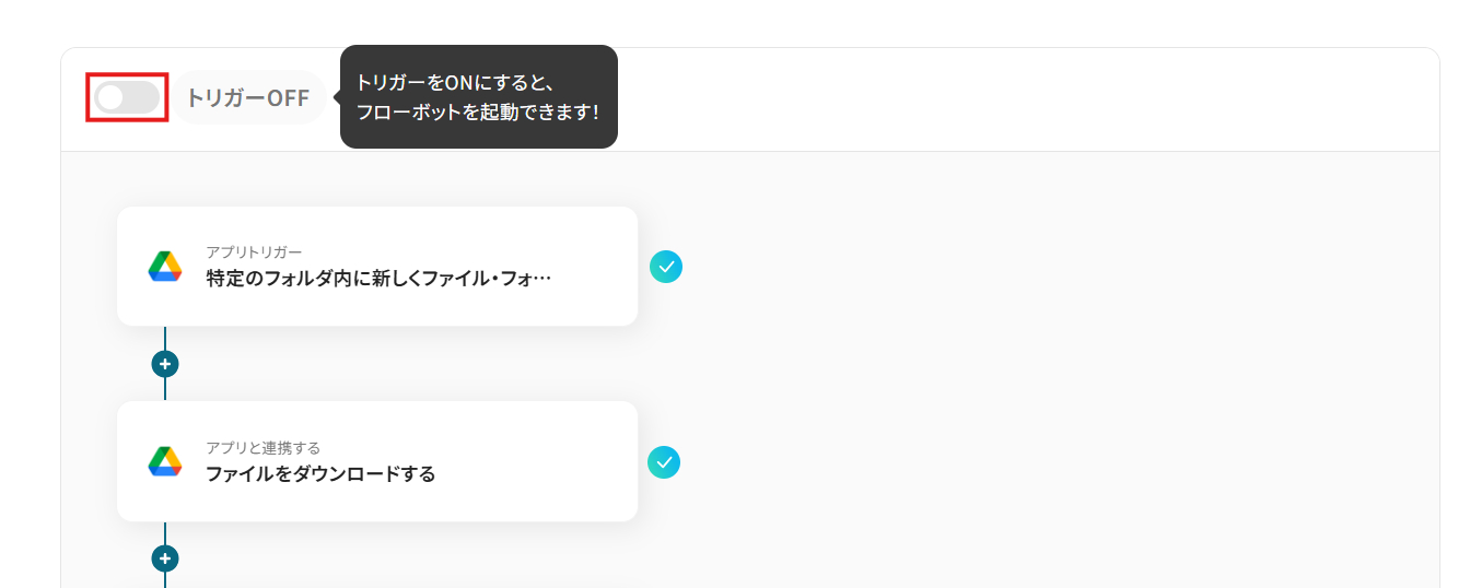 あとで稼働させる場合は、フローボット設定画面の左上にあるトリガースイッチをクリックすることで、トリガーをONにできます。