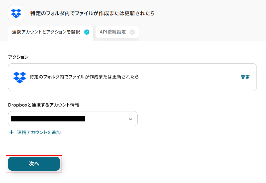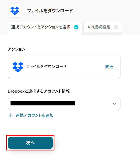 ステップ4:Dropboxのファイルをダウンロードする設定