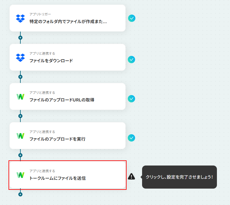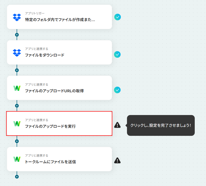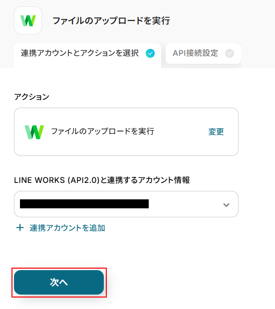 ステップ6:LINE WORKSにファイルのアップロードを実行する設定
