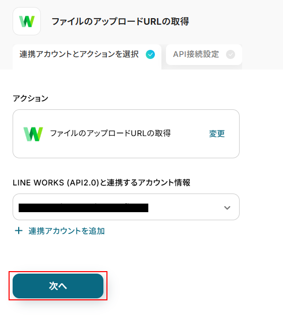 ステップ5:LINE WORKSにファイルのアップロードURLを取得する設定