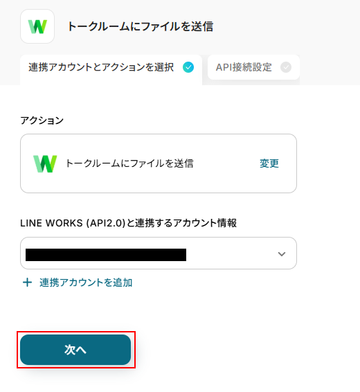 ステップ7:LINE WORKSのトークルームにファイルを送信する設定