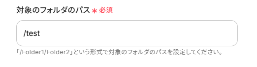 フォルダのパスを設定します。 フォルダのパスはステップ3の対象のフォルダのパスで設定したものと同じものを設定してください。