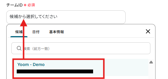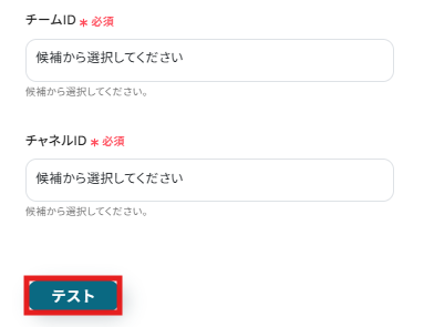 チームIDとチャネルIDはボックスを開いて候補から選択してください。