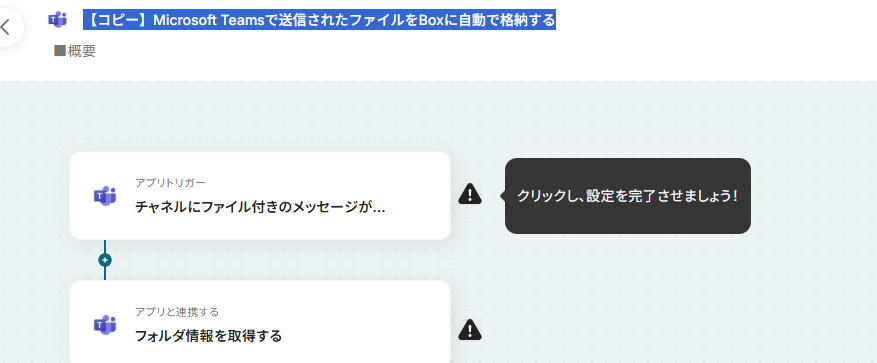Microsoft Teamsのトリガー設定とBoxのアクション設定