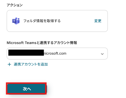 ステップ4:Microsoft Teamsのフォルダ情報を取得する フローに戻り、「フォルダ情報を取得する」をクリックします。