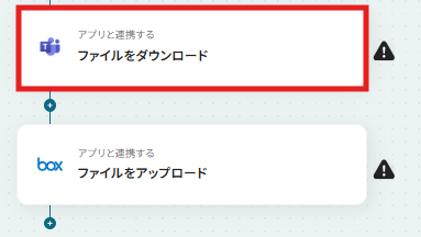 はじめに、Microsoft TeamsとBoxをYoomと連携します。 次に、トリガーでMicrosoft Teamsを選択し、「チャネルにファイル付きのメッセージが送信されたら」というアクションを設定します。 次に、オペレーションでMicrosoft Teamsの「フォルダ情報を取得する」アクションと、「ファイルをダウンロード」アクションを順に設定します。 最後に、オペレーションでBoxの「ファイルをアップロード」アクションを設定し、ダウンロードしたファイルを指定のフォルダに格納します。 ※「トリガー」:フロー起動のきっかけとなるアクション、「オペレーション」:トリガー起動後、フロー内で処理を行うアクション■このワークフローのカスタムポイント