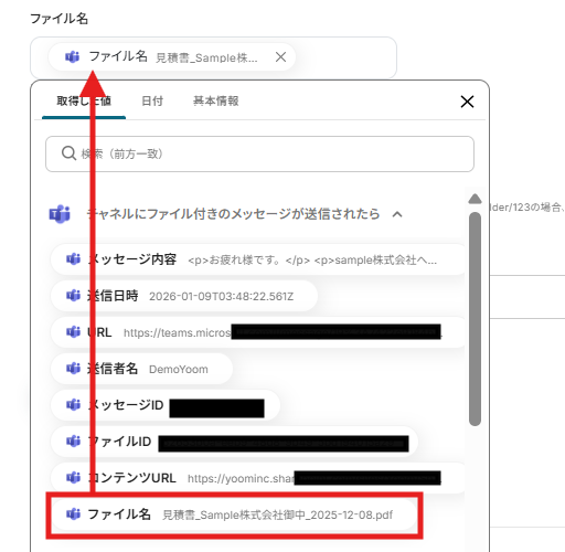 ファイル名は以下のように取得した値を引用して選択します。