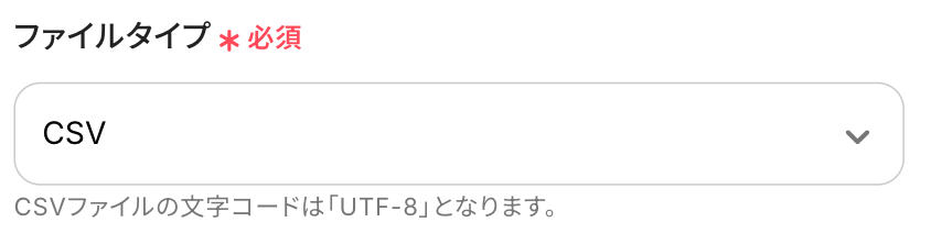 続いて、「ファイルタイプ」 を設定します。 プルダウンから「CSV」を選択してください。