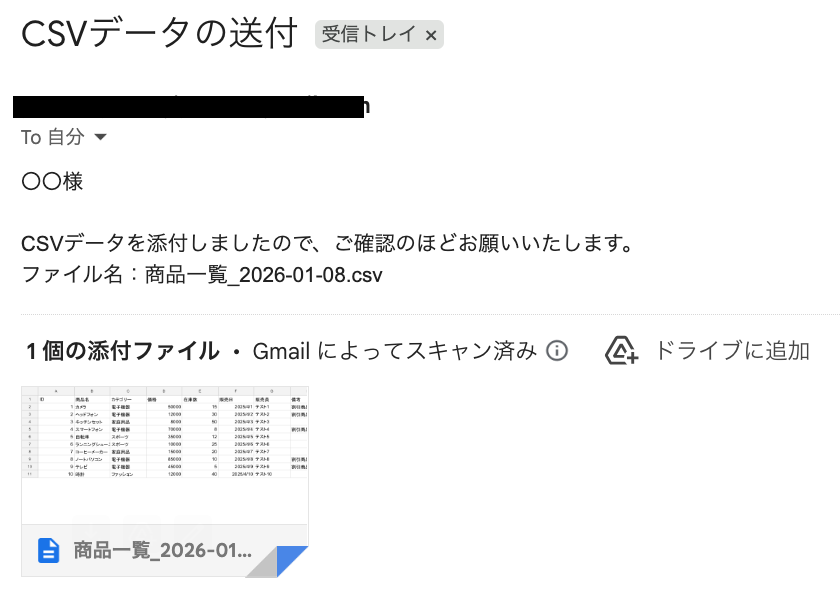 指定日時にGoogle DriveからCSVデータをダウンロードし、Gmailで送信する