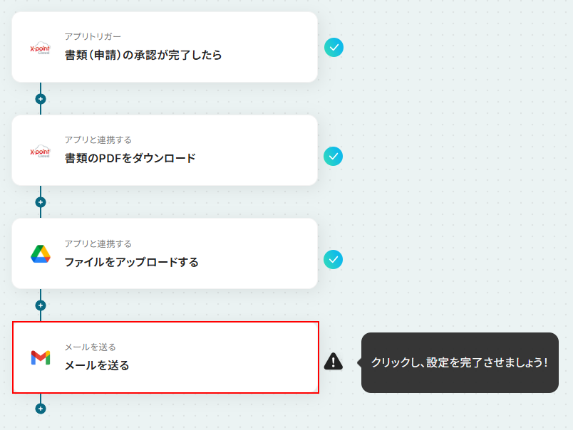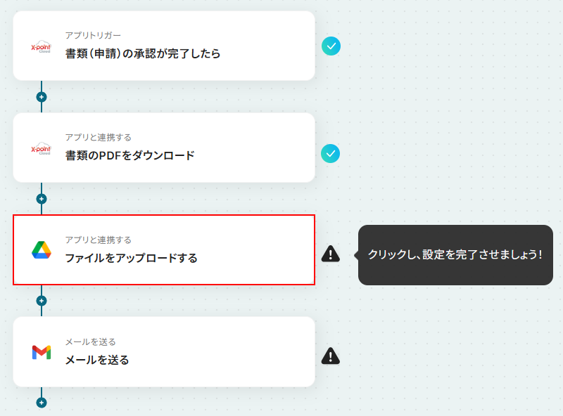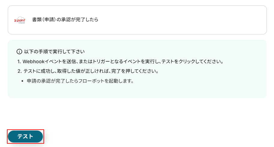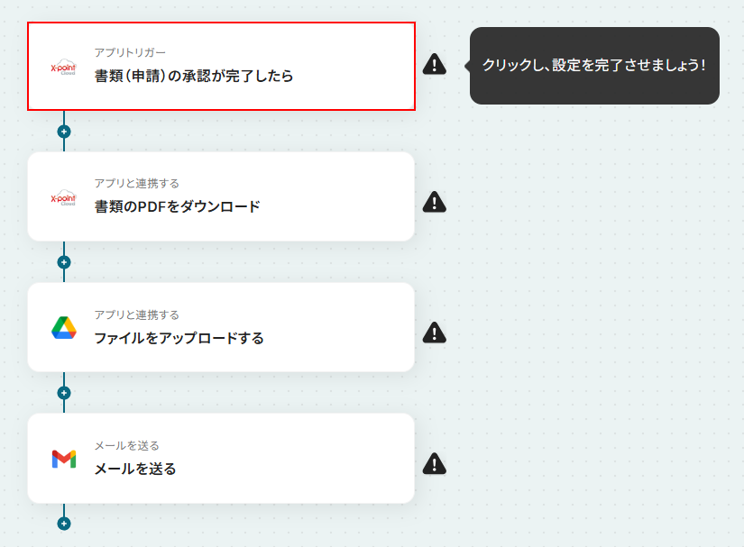 今回ご紹介するテンプレートは、X-point Cloudの書類(申請)の承認が完了したら起動します。