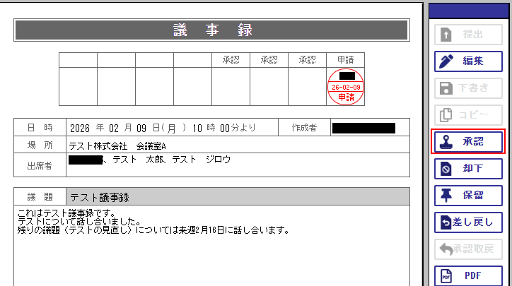 X-point Cloudの画面に移動し、先ほどフォームIDに設定した書類の承認を行ってください。